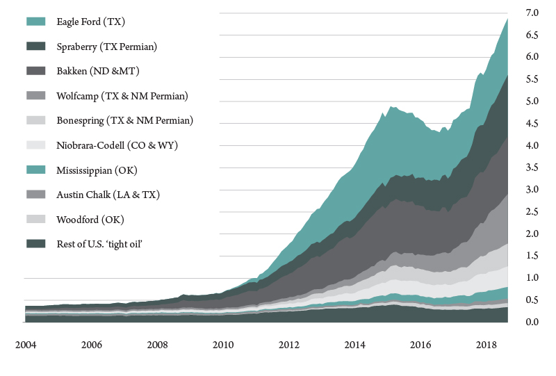 We are seeing an uptick in oil and gas permitting by the Montana Board of Oil and Gas. Fifty-nine new-well permits were issued in roughly the first 11 months of 2018, compared with 35 for all of 2017 (Montana Board of Oil and Gas, 2018). But prices still matter. In the near term, prices may remain lower and more volatile than companies need to fund all their multimillion-dollar projects in new shale-related or enhanced oil recovery projects.