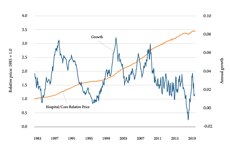 Figure 2. Hospital prices relative to core consumer price index. Source: Bureau of Labor Statistics.
