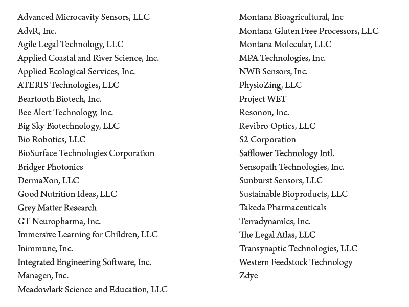 Table 1. Spin-off companies from Montana University System research. Source: Bureau of Business and Economic Research and the Montana University System.
