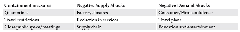 Most economists and economic institutions, e.g. The International Monetary Fund, World Bank and Organization of Economic Cooperation and Development, all agree what the sources of the negative supply and demand shocks are, which are highlighted in Table 1. Concentrating first on the supply-side, the supply chain has received most of the attention. And much of this has to do with the intermediate parts in Asia. Many have pointed to the SARS crisis as the best comparable precedent to the current pandemic. However, COVID-19 is likely to have further-reaching economic consequences than SARS, because China’s role in the world economy has more than doubled since 2002.