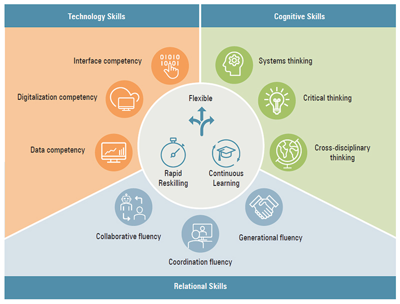 Interface competency: Workers across all levels of management will be called to interface with technologies to accomplish their tasks. Already, radiologists are increasingly working with artificial intelligence to improve diagnostic accuracy, while chefs are making data-driven decisions to ensure food safety.