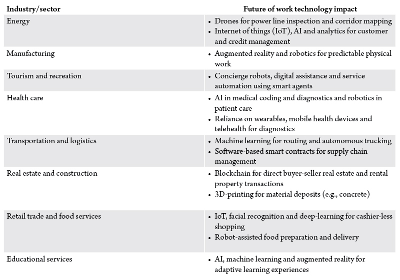 The speed and scale at which this is unfolding is unprecedented, largely due to the rapid coming together of these super technologies on a global scale. And the employment landscape is bound to be inescapably altered. Widespread adoption of these innovations are expected to have far reaching implications for Montana’s labor market – both for blue- and white-collar professions. Table 1 provides an overview of how these emerging technologies are expected to transform our state’s jobs.